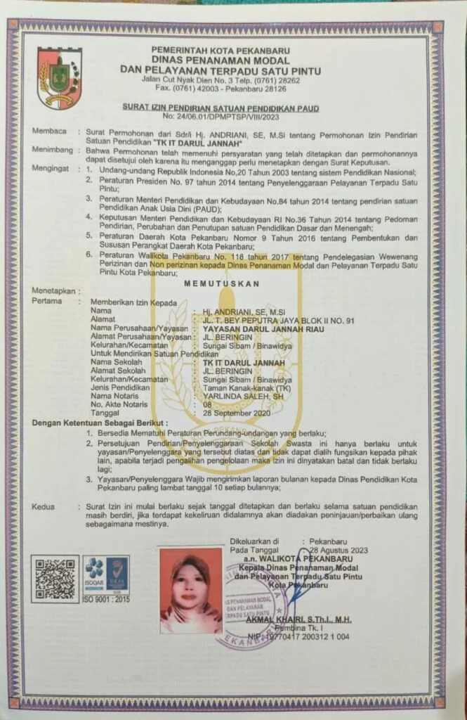 Program pendidikan anak usia dini berbasis Islam yang memadukan aspek kognitif, motorik, dan spiritual dalam suasana belajar yang menyenangkan dan aman.